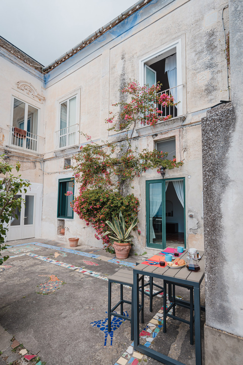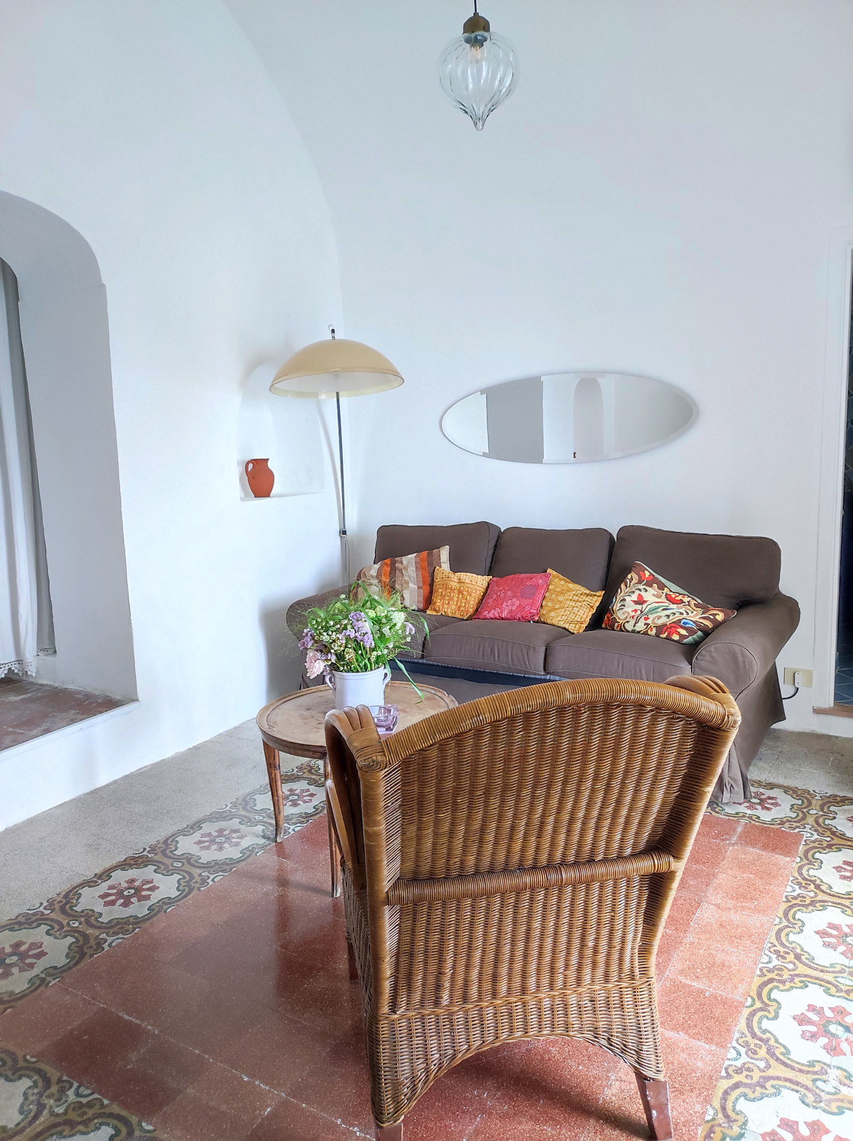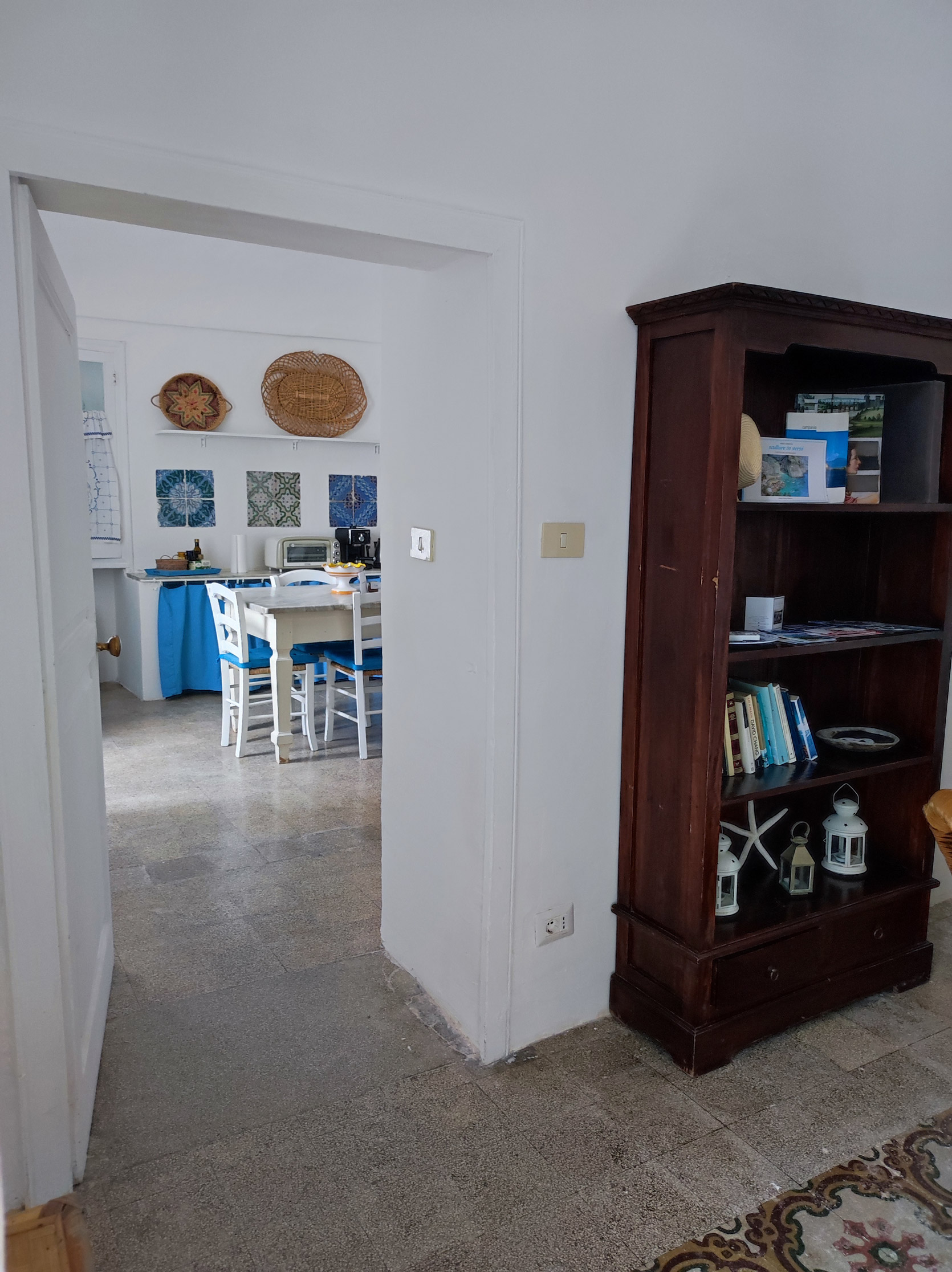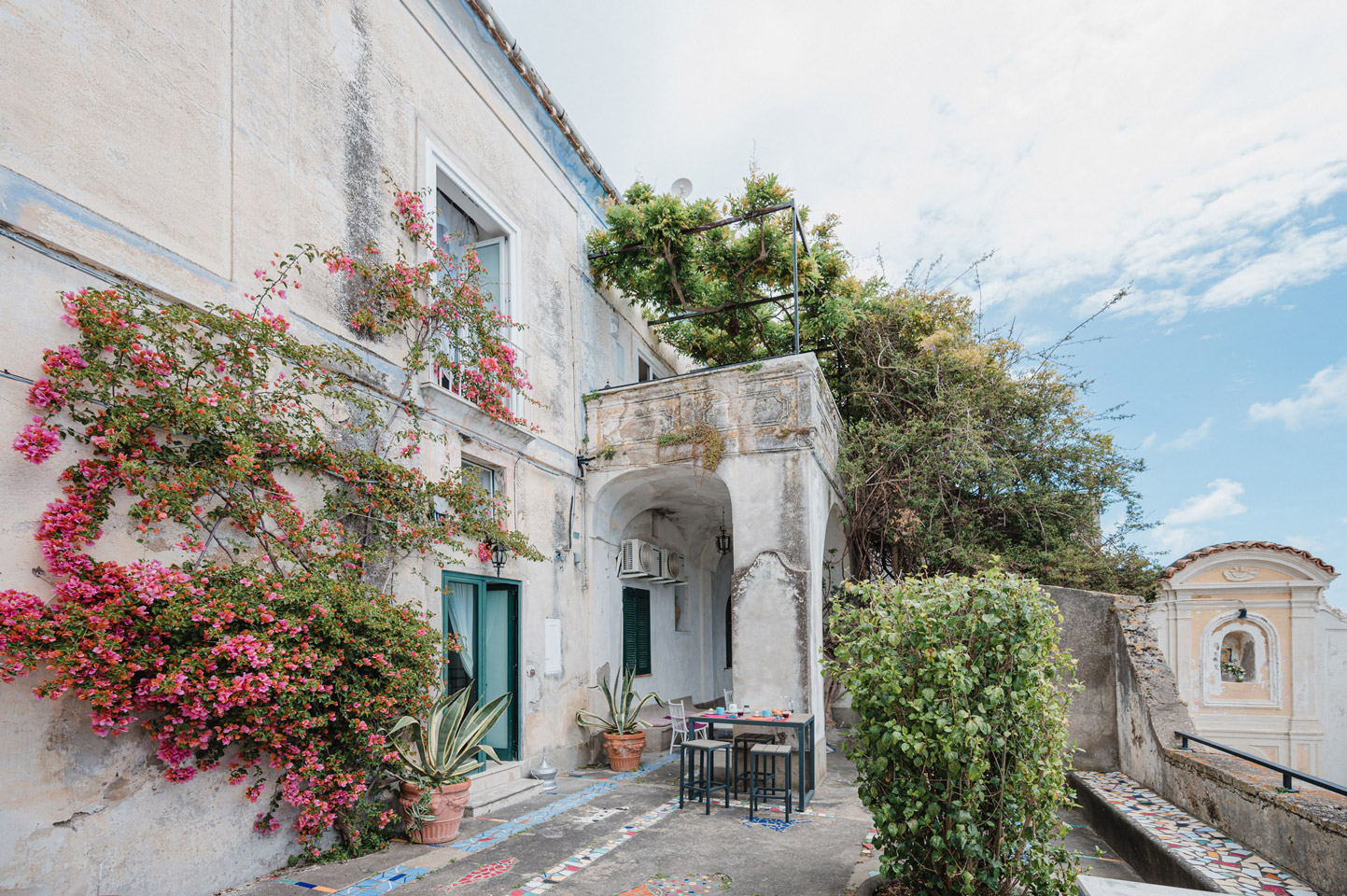 Appartamento con accesso dallo storico cortile della proprietà in cui godersi l’ombra della bouganville e del porticato nei pomeriggi caldi, ammirando il paesaggio che la natura ci regala. Percorrendo la scalinata d’ingresso al cortile ti accoglierà una bellissima edicola votiva, lì da centinaia di anni a dare il benvenuto a coloro che accedono alla casa.